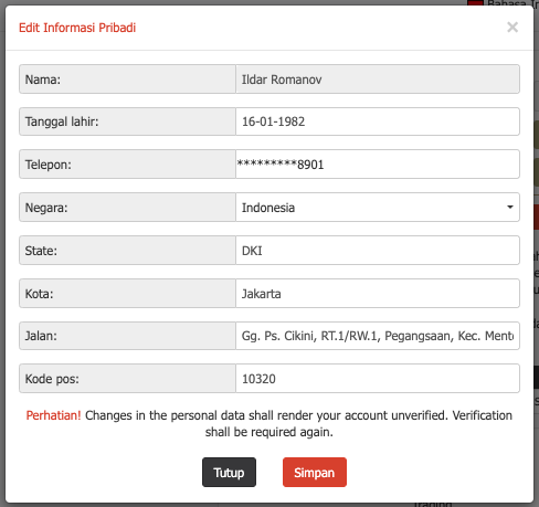 4. Edit detail akun sesuai dengan data anda, kemudian klik Simpan