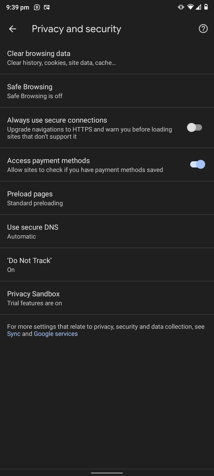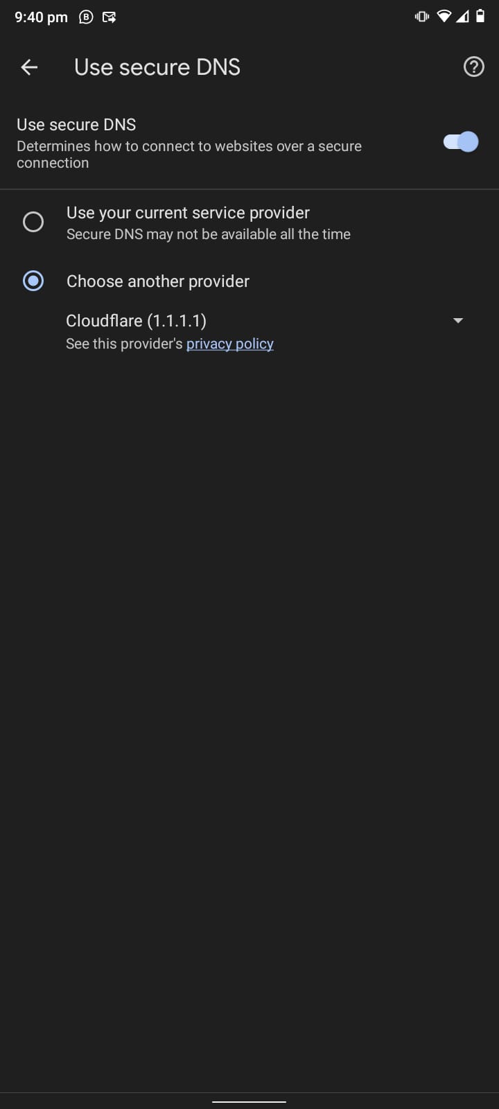 4. Scroll kebawah Pilih menu Use Secure DNS