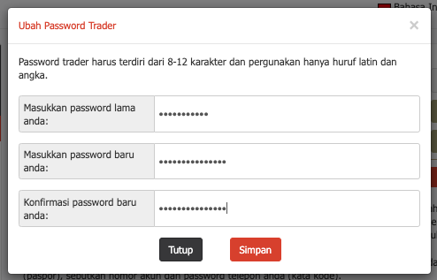 3. Pilih menu Ubah Password Trader